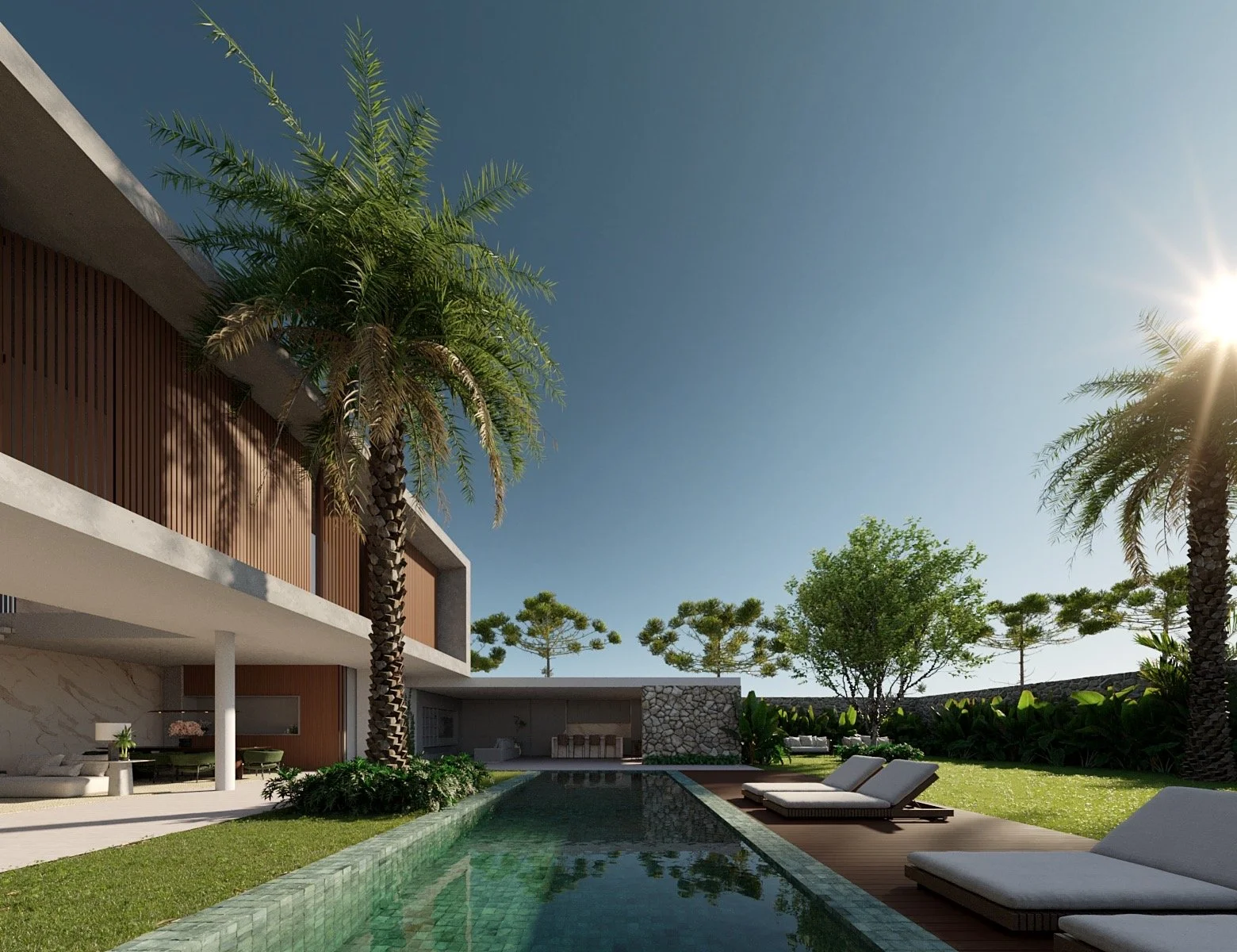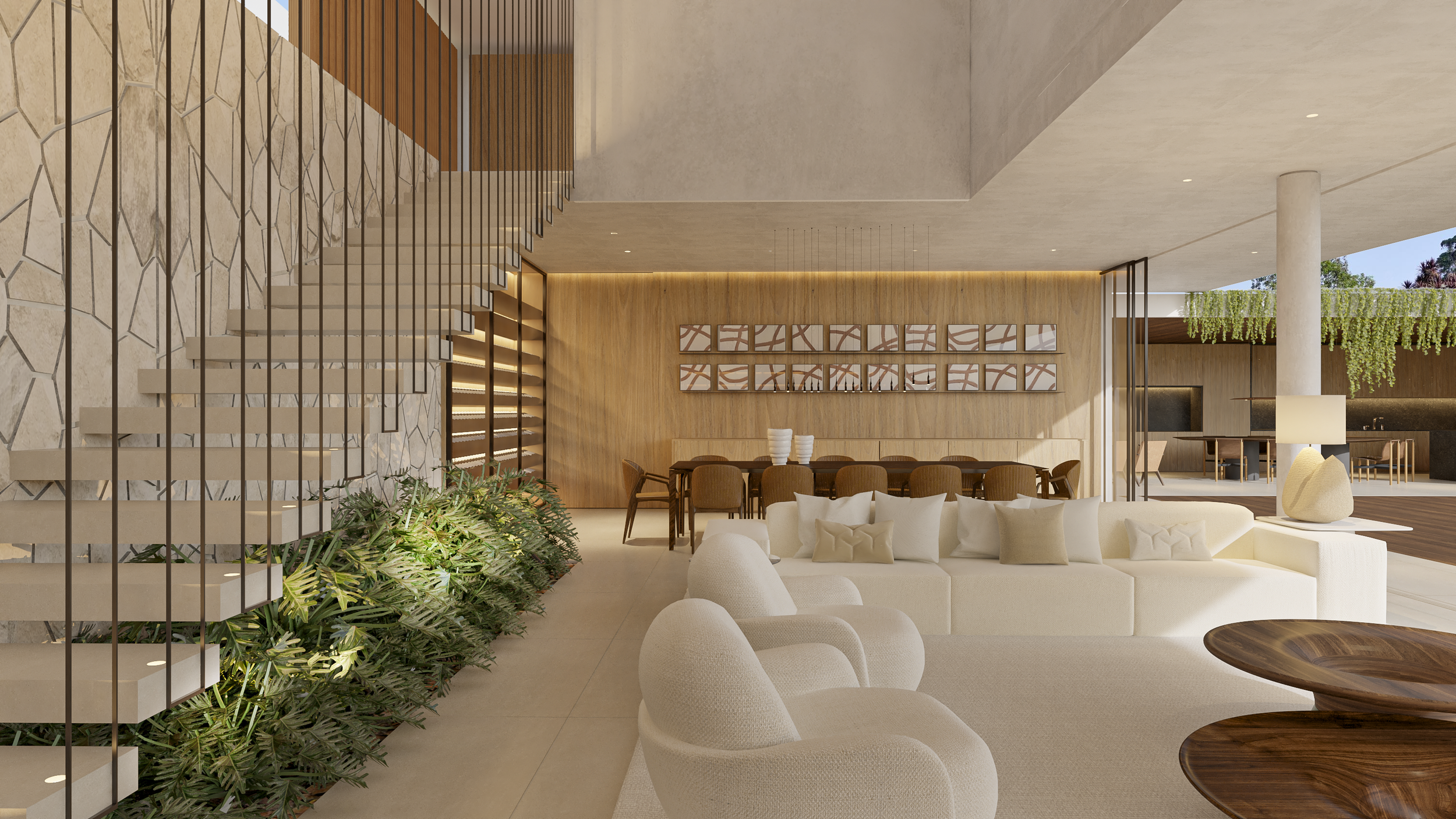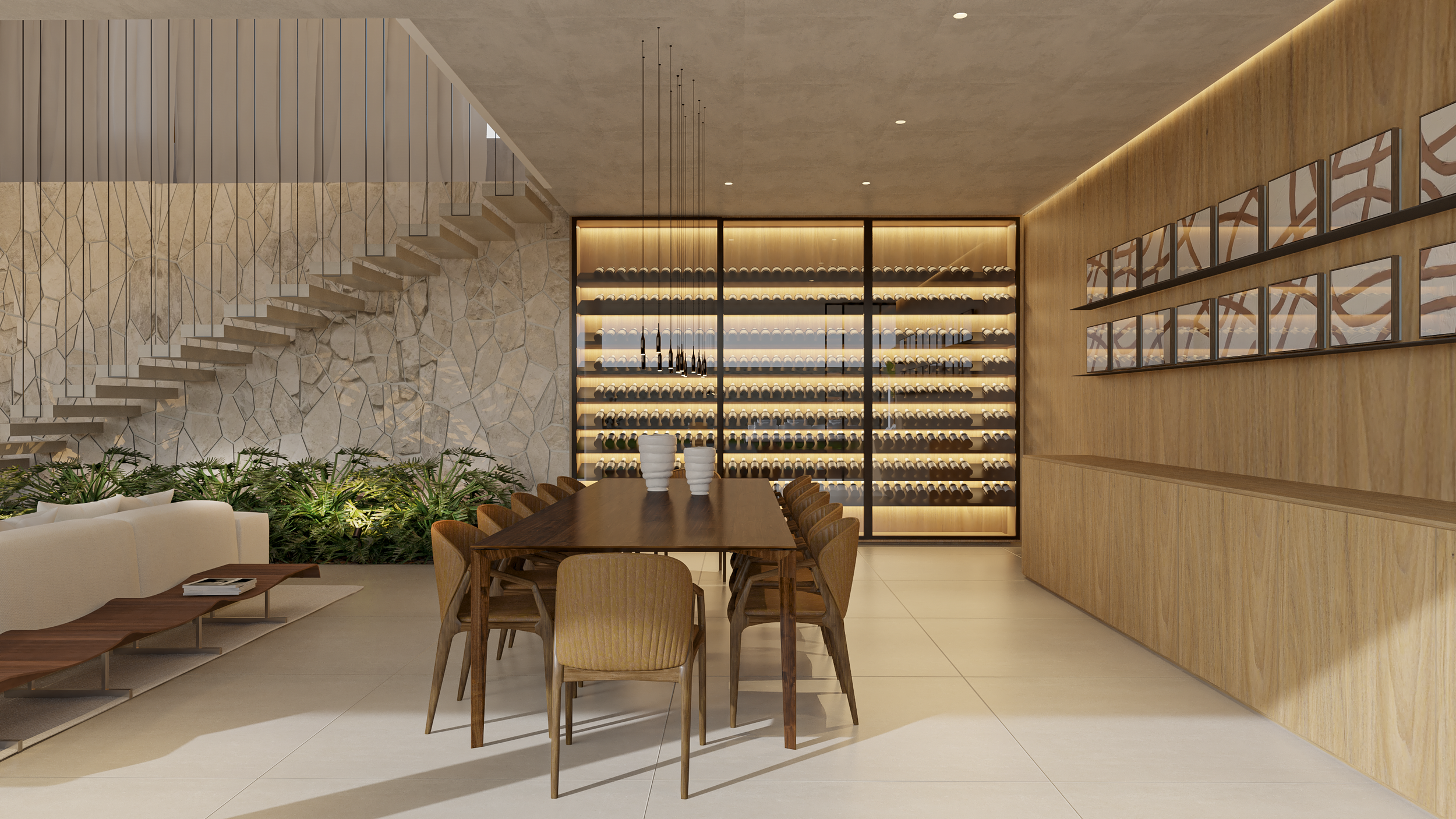 Localizada no interior de Minas Gerais, a casa Araucária possui terreno de 1200m² com 560 m² de edificação. Puro contraste e complementação entre arquitetura e paisagismo. O verde distribuído pela paisagem enfatiza a volumetria. Criam-se espaços de aconchego onde a predominância da madeira é um dos partidos do desenho da marcenaria.