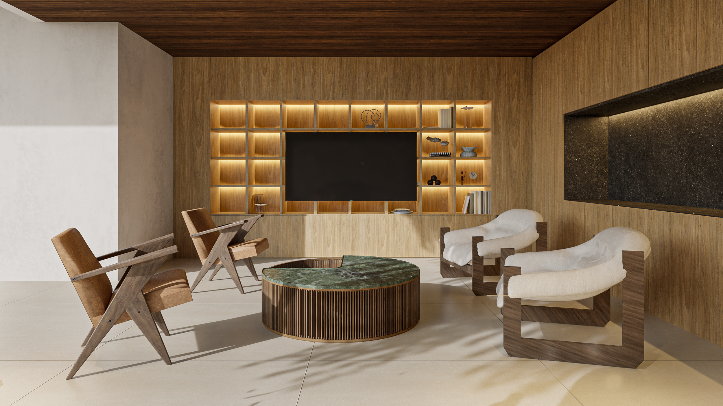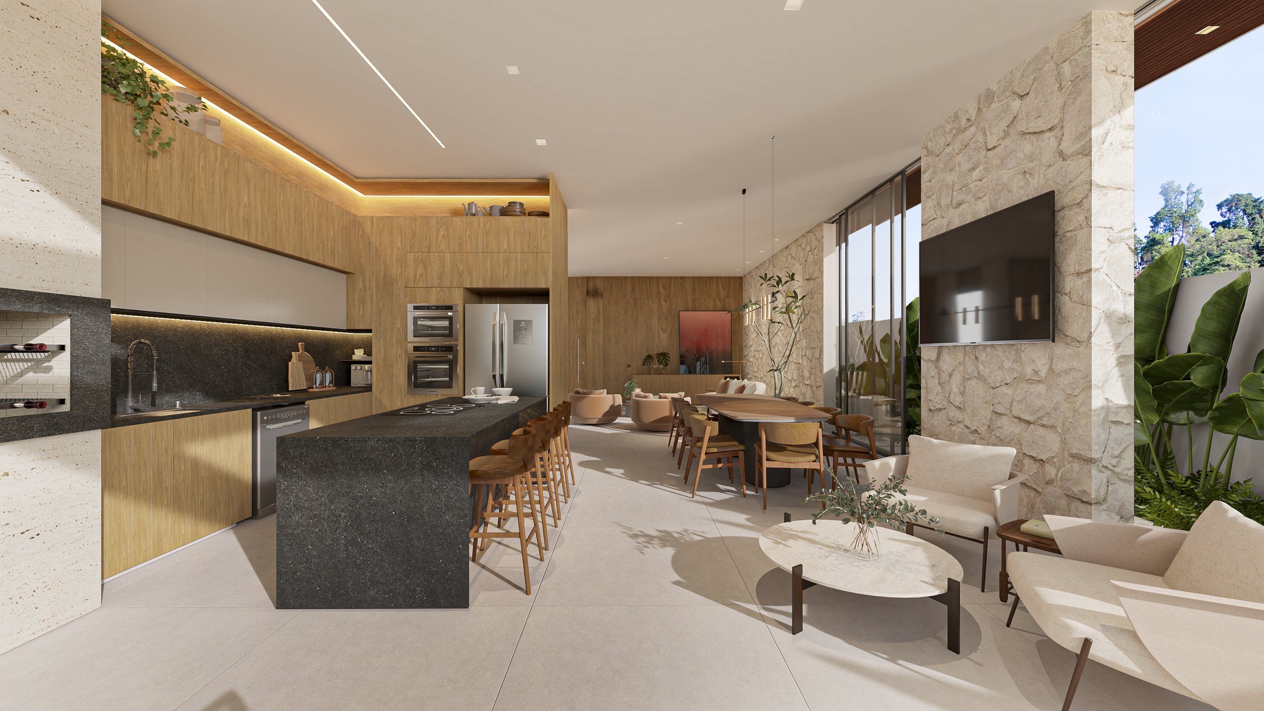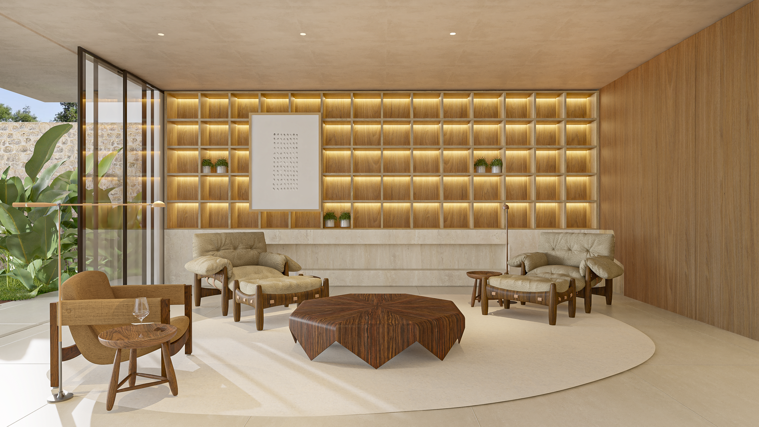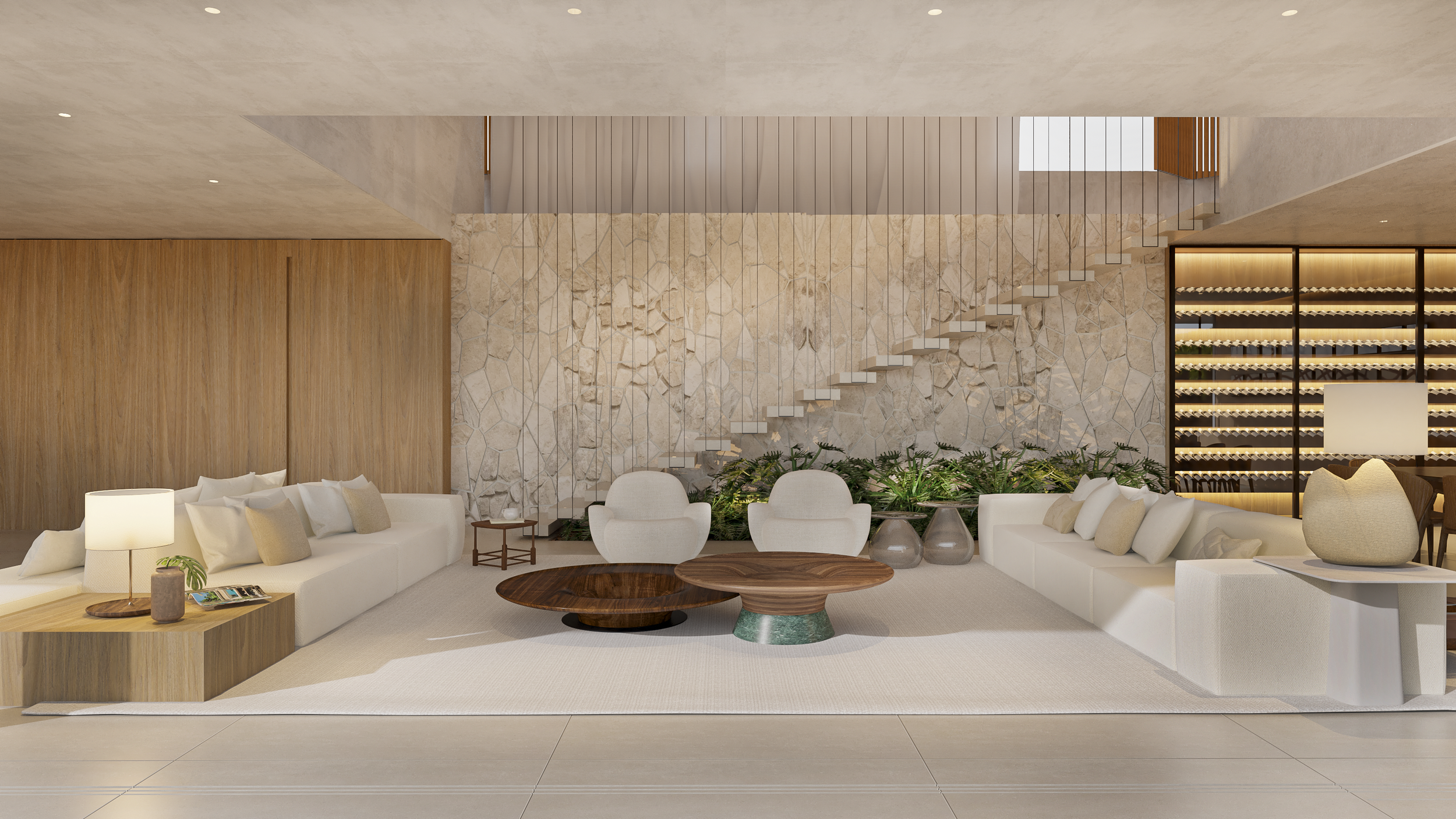 Localizada no interior de Minas Gerais, a casa Araucária possui terreno de 1200m² com 560 m² de edificação. Puro contraste e complementação entre arquitetura e paisagismo. O verde distribuído pela paisagem enfatiza a volumetria. Criam-se espaços de aconchego onde a predominância da madeira é um dos partidos do desenho da marcenaria.